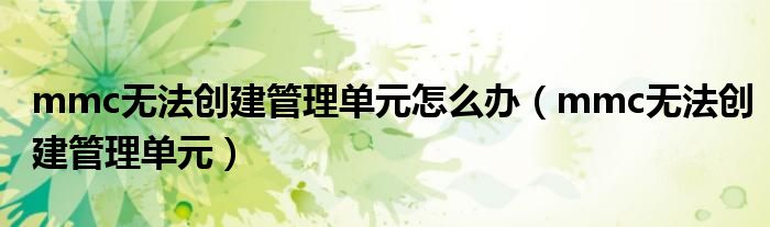 关于mmc无法创建管理单元怎么办,mmc无法创建管理单元这个很多人还不知道,今天菲菲来为大家解答以上的问题,现在让我们一起来看看吧!