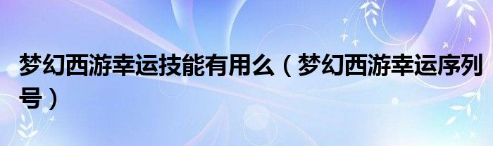 梦幻西游幸运技能有用么(梦幻西游幸运序列号)