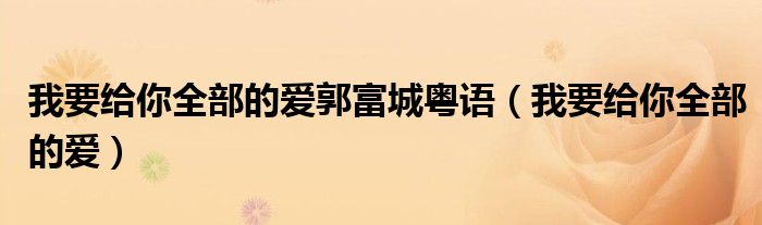 我要给你全部的爱郭富城粤语(我要给你全部的爱)