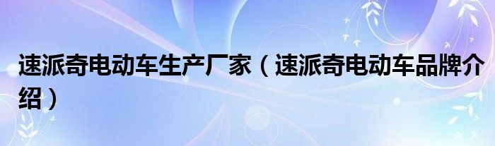 大家好,小源来为大家解答以上问题。速派奇电动车生产厂家,速派奇电动车品牌介绍很多人还不知道,现在让我们一起来看看吧!