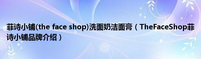 大家好,小源来为大家解答以上问题。菲诗小铺(the face shop)洗面奶洁面膏,TheFaceShop菲诗小铺品牌介绍很多人还不知道,现在让我们一起来看看吧!