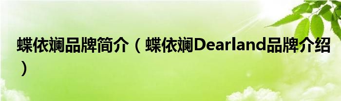 大家好,小源来为大家解答以上问题。蝶依斓品牌简介,蝶依斓Dearland品牌介绍很多人还不知道,现在让我们一起来看看吧!