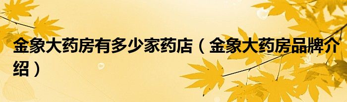 大家好,小源来为大家解答以上问题。金象大药房有多少家药店,金象大药房品牌介绍很多人还不知道,现在让我们一起来看看吧!