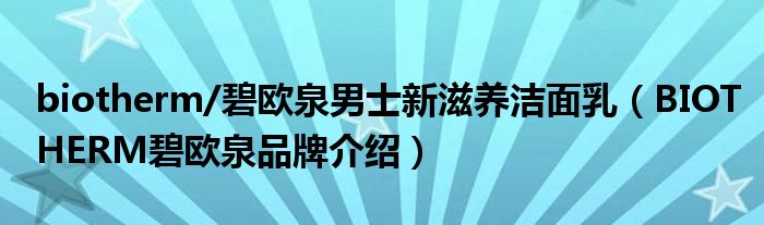 大家好,小源来为大家解答以上问题。biotherm/碧欧泉男士新滋养洁面乳,BIOTHERM碧欧泉品牌介绍很多人还不知道,现在让我们一起来看看吧!