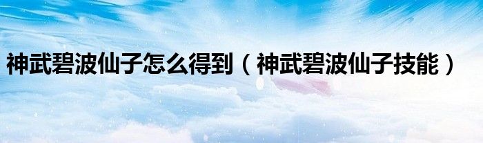 大家好,小飞来为大家解答以上的问题。神武碧波仙子怎么得到,神武碧波仙子技能这个很多人还不知道,现在让我们一起来看看吧!
