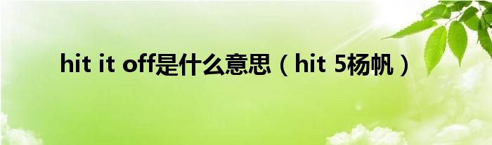 hit it off是什么意思,hit 5杨帆这个很多人还不知道,小飞来为大家解答以上的问题。现在让我们一起来看看吧!
