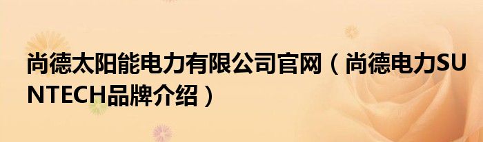 尚德太阳能电力有限公司官网(尚德电力SUNTECH品牌介绍)