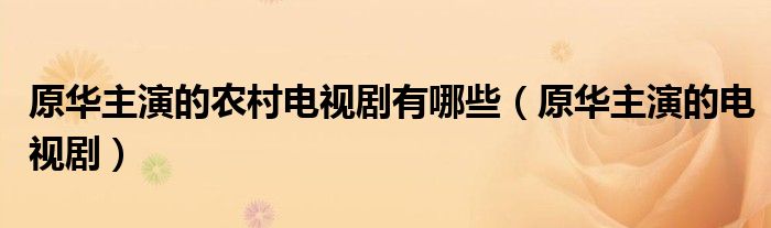 大家好,小飞来为大家解答以上的问题。原华主演的农村电视剧有哪些,原华主演的电视剧这个很多人还不知道,现在让我们一起来看看吧!