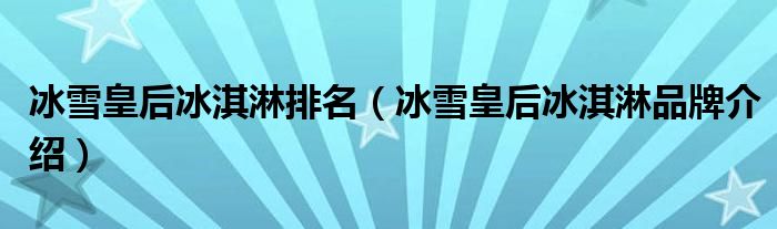 大家好,小源来为大家解答以上问题。冰雪皇后冰淇淋排名,冰雪皇后冰淇淋品牌介绍很多人还不知道,现在让我们一起来看看吧!