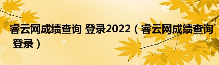 大家好,小晋来为大家解答以下问题,关于睿云网成绩查询 登录2022,睿云网成绩查询 登录很多人还不知道,今天让我们一起来看看吧!