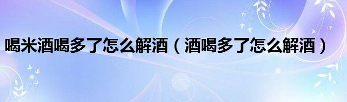大家好,linda来为大家解答以上的问题。喝米酒喝多了怎么解酒,酒喝多了怎么解酒很多人还不知道,现在让我们一起来看看吧!