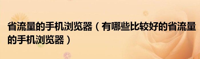 9,可以节省流量的手机浏览器有哪些? :我觉得手机QQ浏览器真的是可以节省流量,一个是因为它的速度快,不会因为卡了而浪费流量,它还会自动阻止后台广告和插件,这也可以节省流量,加上它内部的特殊设计,确实能省不少流量。