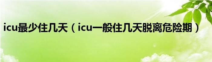 大家好,linda来为大家解答以上的问题。icu最少住几天,icu一般住几天脱离危险期很多人还不知道,现在让我们一起来看看吧!