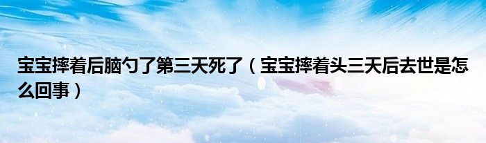 大家好,linda来为大家解答以上的问题。宝宝摔着后脑勺了第三天死了,宝宝摔着头三天后去世是怎么回事很多人还不知道,现在让我们一起来看看吧!