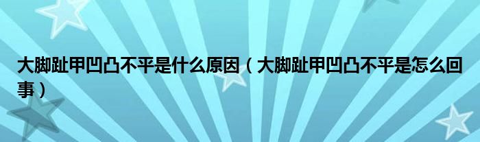 大家好,linda来为大家解答以上的问题。大脚趾甲凹凸不平是什么原因,大脚趾甲凹凸不平是怎么回事很多人还不知道,现在让我们一起来看看吧!