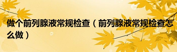 做个前列腺液常规检查(前列腺液常规检查怎么做)