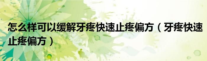 3、能快速缓解牙痛的偏方只能暂时缓解疼痛的性质和程度,不能完全解决牙髓炎的症状。