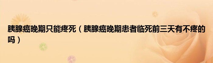 大家好,linda来为大家解答以上的问题。胰腺癌晚期只能疼死,胰腺癌晚期患者临死前三天有不疼的吗很多人还不知道,现在让我们一起来看看吧!