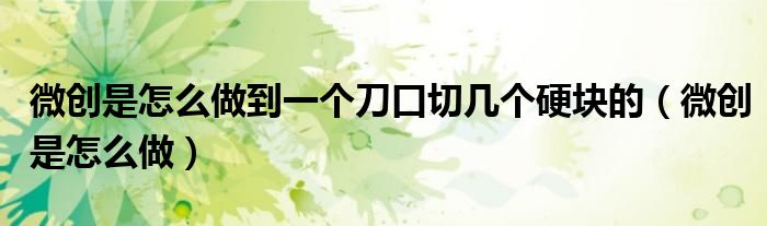 大家好,linda来为大家解答以上的问题。微创是怎么做到一个刀口切几个硬块的,微创是怎么做很多人还不知道,现在让我们一起来看看吧!