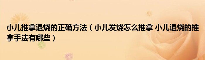 小儿推拿退烧的正确方法(小儿发烧怎么推拿小儿退烧的推拿手法有哪些)