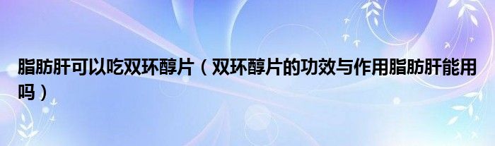 大家好,linda来为大家解答以上的问题。脂肪肝可以吃双环醇片,双环醇片的功效与作用脂肪肝能用吗很多人还不知道,现在让我们一起来看看吧!