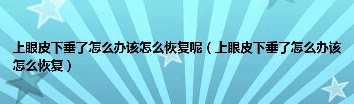大家好,linda来为大家解答以上的问题。上眼皮下垂了怎么办该怎么恢复呢,上眼皮下垂了怎么办该怎么恢复很多人还不知道,现在让我们一起来看看吧!