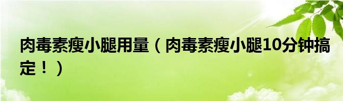 1、拥有一双修长优雅的小腿,是这个夏天读书的必备武器。但是夏天将至,如何在最快的时间内拥有一双优雅的小腿呢?“肉毒素瘦小腿”意为“腓肠肌生物还原”,即通过门诊注射肉毒素瘦小腿,轻松10分钟,穿上迷你裙,秀出修长小腿,走过这个夏天。