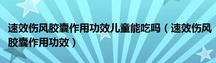 速效伤风胶囊作用功效儿童能吃吗(速效伤风胶囊作用功效)