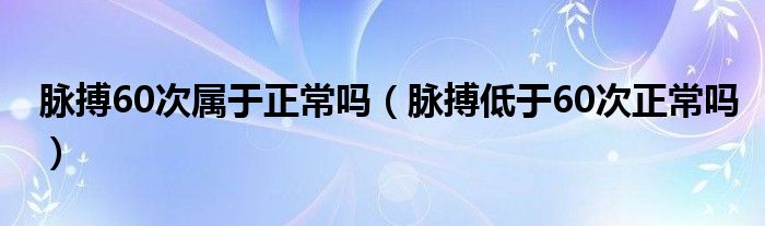 大家好,linda来为大家解答以上的问题。脉搏60次属于正常吗,脉搏低于60次正常吗很多人还不知道,现在让我们一起来看看吧!