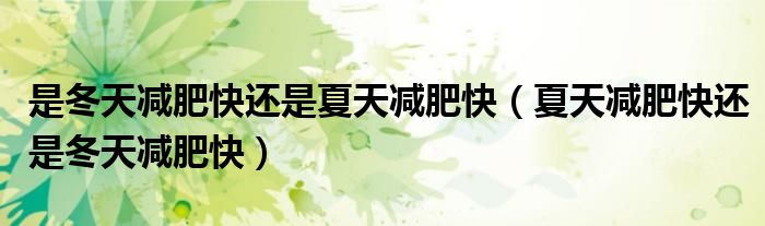 大家好,linda来为大家解答以上的问题。是冬天减肥快还是夏天减肥快,夏天减肥快还是冬天减肥快很多人还不知道,现在让我们一起来看看吧!