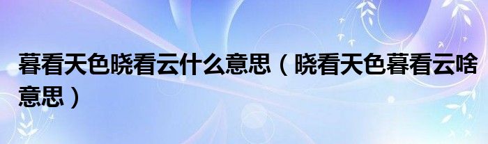 大家好,小晋来为大家解答以下问题,关于暮看天色晓看云什么意思,晓看天色暮看云啥意思很多人还不知道,今天让我们一起来看看吧!