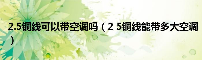 大家好,小晋来为大家解答以下问题,关于2.5铜线可以带空调吗,2 5铜线能带多大空调很多人还不知道,今天让我们一起来看看吧!