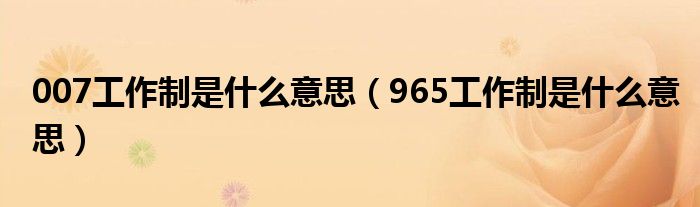 大家好,小晋来为大家解答以下问题,关于007工作制是什么意思,965工作制是什么意思很多人还不知道,今天让我们一起来看看吧!
