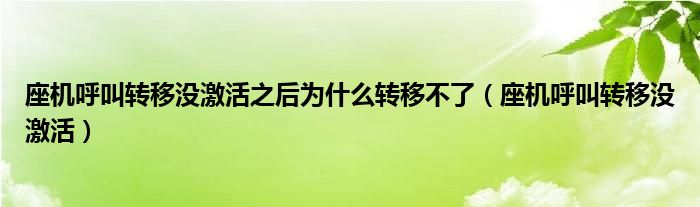 大家好,小晋来为大家解答以下问题,关于座机呼叫转移没激活之后为什么转移不了,座机呼叫转移没激活很多人还不知道,今天让我们一起来看看吧!