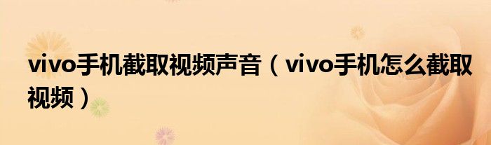 大家好,小晋来为大家解答以下问题,关于vivo手机截取视频声音,vivo手机怎么截取视频很多人还不知道,今天让我们一起来看看吧!