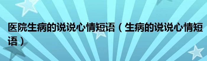 大家好,小晋来为大家解答以下问题,关于医院生病的说说心情短语,生病的说说心情短语很多人还不知道,今天让我们一起来看看吧!