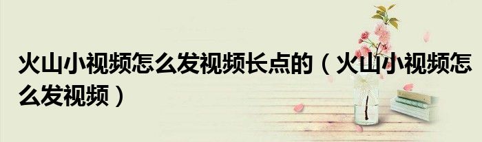 大家好,小晋来为大家解答以下问题,关于火山小视频怎么发视频长点的,火山小视频怎么发视频很多人还不知道,今天让我们一起来看看吧!