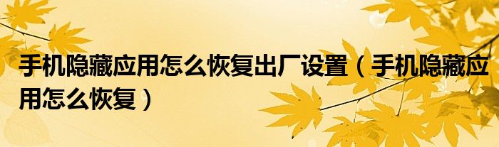手机隐藏应用怎么恢复出厂设置(手机隐藏应用怎么恢复)