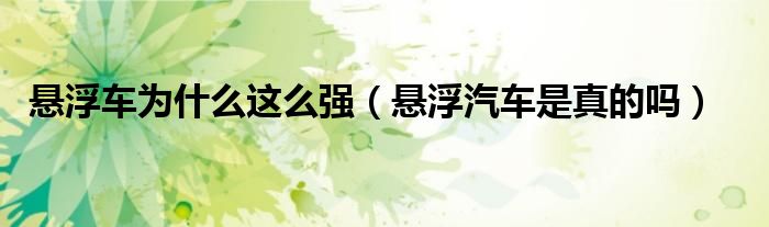 大家好,小晋来为大家解答以下问题,关于悬浮车为什么这么强,悬浮汽车是真的吗很多人还不知道,今天让我们一起来看看吧!