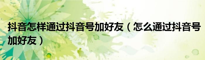 大家好,小晋来为大家解答以下问题,关于抖音怎样通过抖音号加好友,怎么通过抖音号加好友很多人还不知道,今天让我们一起来看看吧!
