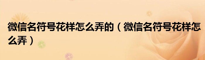 大家好,小晋来为大家解答以下问题,关于微信名符号花样怎么弄的,微信名符号花样怎么弄很多人还不知道,今天让我们一起来看看吧!