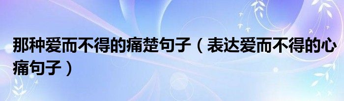 大家好,小晋来为大家解答以下问题,关于那种爱而不得的痛楚句子,表达爱而不得的心痛句子很多人还不知道,今天让我们一起来看看吧!