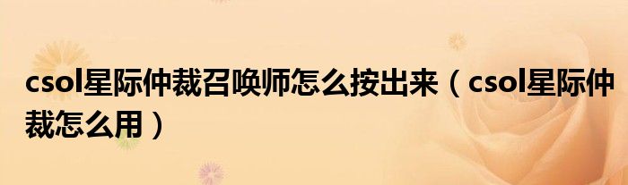 大家好,小晋来为大家解答以下问题,关于csol星际仲裁召唤师怎么按出来,csol星际仲裁怎么用很多人还不知道,今天让我们一起来看看吧!
