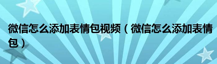 微信怎么添加表情包视频(微信怎么添加表情包)