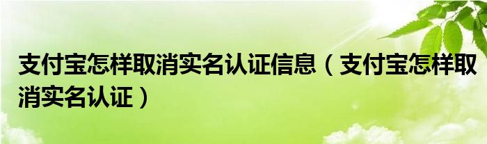 支付宝怎样取消实名认证信息(支付宝怎样取消实名认证)