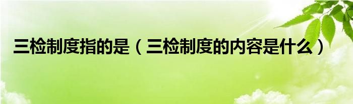 大家好,小晋来为大家解答以下问题,关于三检制度指的是,三检制度的内容是什么很多人还不知道,今天让我们一起来看看吧!