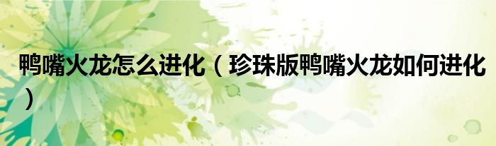 鸭嘴火龙怎么进化(珍珠版鸭嘴火龙如何进化)