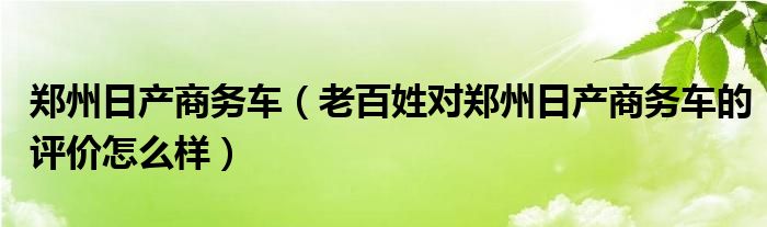 1,老百姓对郑州日产商务车的评价怎么样 :性价比很高的车型,谈不上商务,但日常家用足够.