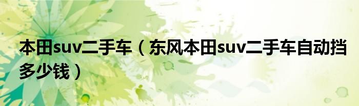 1,东风本田suv二手车自动挡多少钱 :具体需要看车子的年限,配置,实际车况和手续状况才可以准确的估价,一般二手本田crv一般十五万左右居多