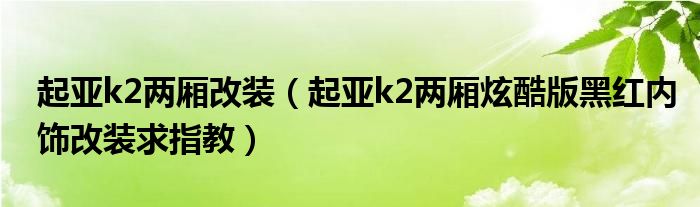 大家好,小常来为大家解答以下问题,对于起亚k2两厢改装,起亚k2两厢炫酷版黑红内饰改装求指教很多人还不知道,今天让我们一起来看看吧!